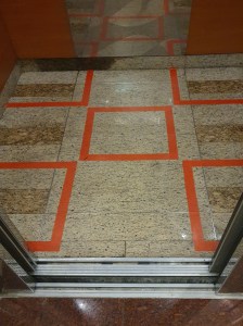 This is one of the elevators in my building. We are discouraged from having more than 5 passengers per ride.