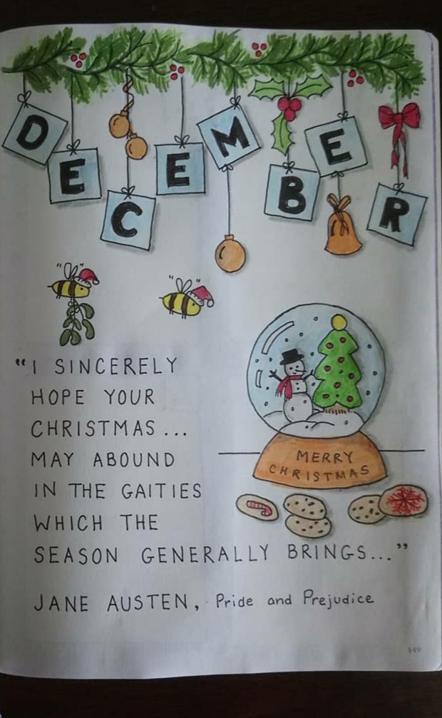 So, here is a spread I made in my bullet journal that reflects my plan. My January theme was Alice In Wonderland.