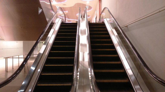 Yep, I’d left my book in the coffeeshop. I had a choice: head back upwards on that escalator or reach the bottom and take the other one up.